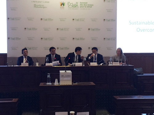 2015年12月4日,袁占亭市长参加了巴黎市长安娜·伊达尔戈和联合国气候变化城市特别代表麦克·布隆伯格联合全球致力于应对气候变化的200多位城市领导者,在巴黎市政厅共同主办的“地方城市领袖气候峰会”。